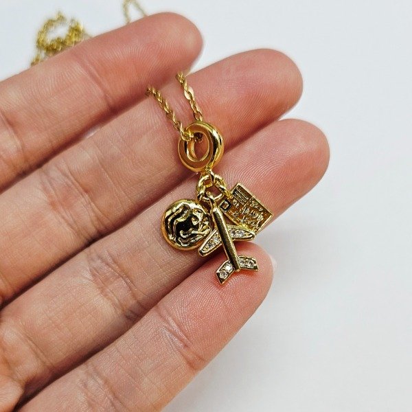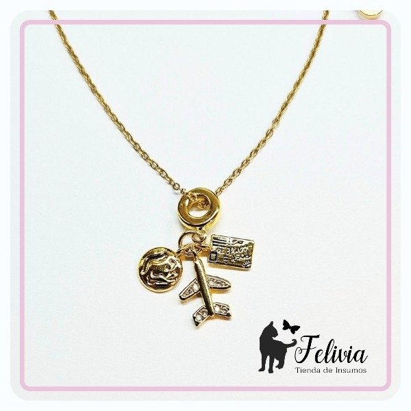 • Material: cadena de acero dorado. Dije de cobre con baño dorado. Se recomienda no mojar