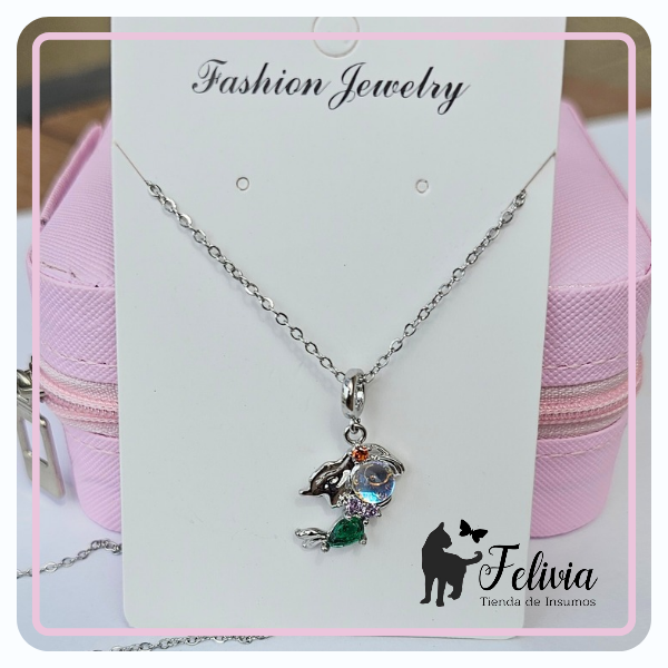 • Material: cadena de acero inoxidable, dije de cobre bañado